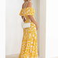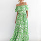 Boat Neck Tie Ruffle Trim Long Swing Dress